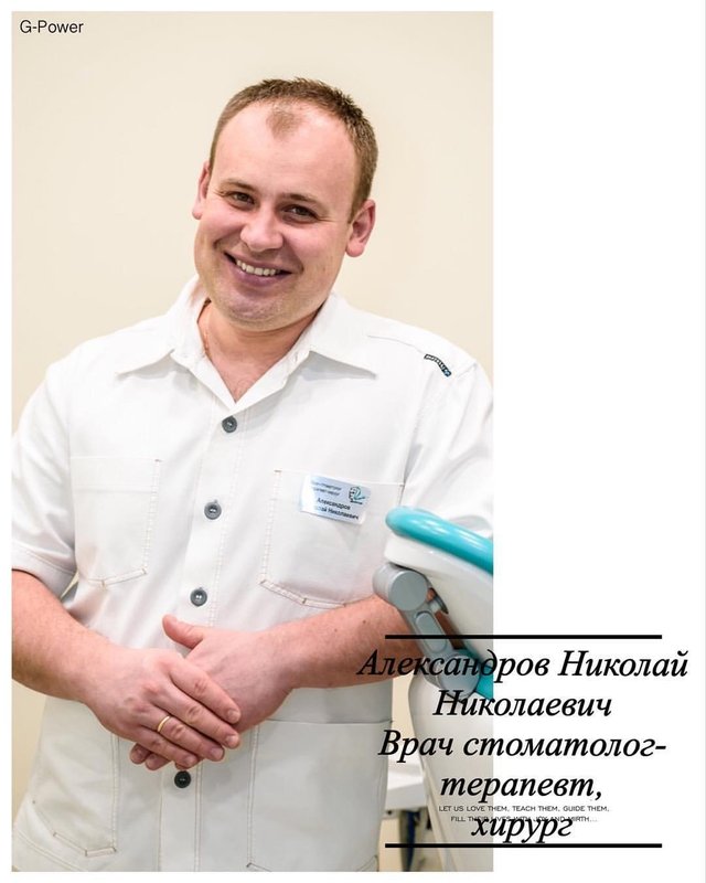 Полностью довольна, постоянно записываюсь к доктору Николаю Николаевичу Александрову. Последний раз я была на чистке зубов, чистка называется "комплексная профессиональная профилактическая гигиена полости рта", там делают ультразвук, Rfloo и полировку пастой. Я осталась очень довольна результатом. Последний раз чистку я делала 2-3 года назад, налет, который образовался за это время, убрали, зубы стали белее на 1,5 тона точно. Убрали зубной камень, десны не травмировали, все замечательно. По времени процедура заняла 37 минут с учетом того, что в это время входило то, что меня одели в специальную одежду, очки. После гигиены доктор дал все рекомендации, ответил на все вопросы. Николай Николаевич молодец, работает всегда быстро, чувствуешь у него на лечении себя комфортно, не больно, вежливый, внимательный, настоящий профессионал! Также недавно я ходила к нему на удаление двух зубов мудрости. Осмотр, снимок и удаление 2 зубов заняло всего лишь 20 минут, это очень быстро! Доктор положил мне лекарство - хороший препарат, дал все рекомендации, которые я соблюдала, благодаря этому, небольшой отек, который был, спал за один день и все зажило у меня за одну неделю. Также я довольна работой администратора, очень приятная женщина, видно, что она любит свою работу, всегда все подробно объясняет и рассказывает. Хочу отметить, что администратор соблюдает все меры, которые предусмотрены в связи с вирусом: измеряет температуру на входе, обязательно дает антисептик для рук, сама носит маску. В клинике уютно, есть зона ожидания с диванчиками. Меня всегда принимают вовремя или даже пораньше. Клинику я порекомендовала мужу и подруге.